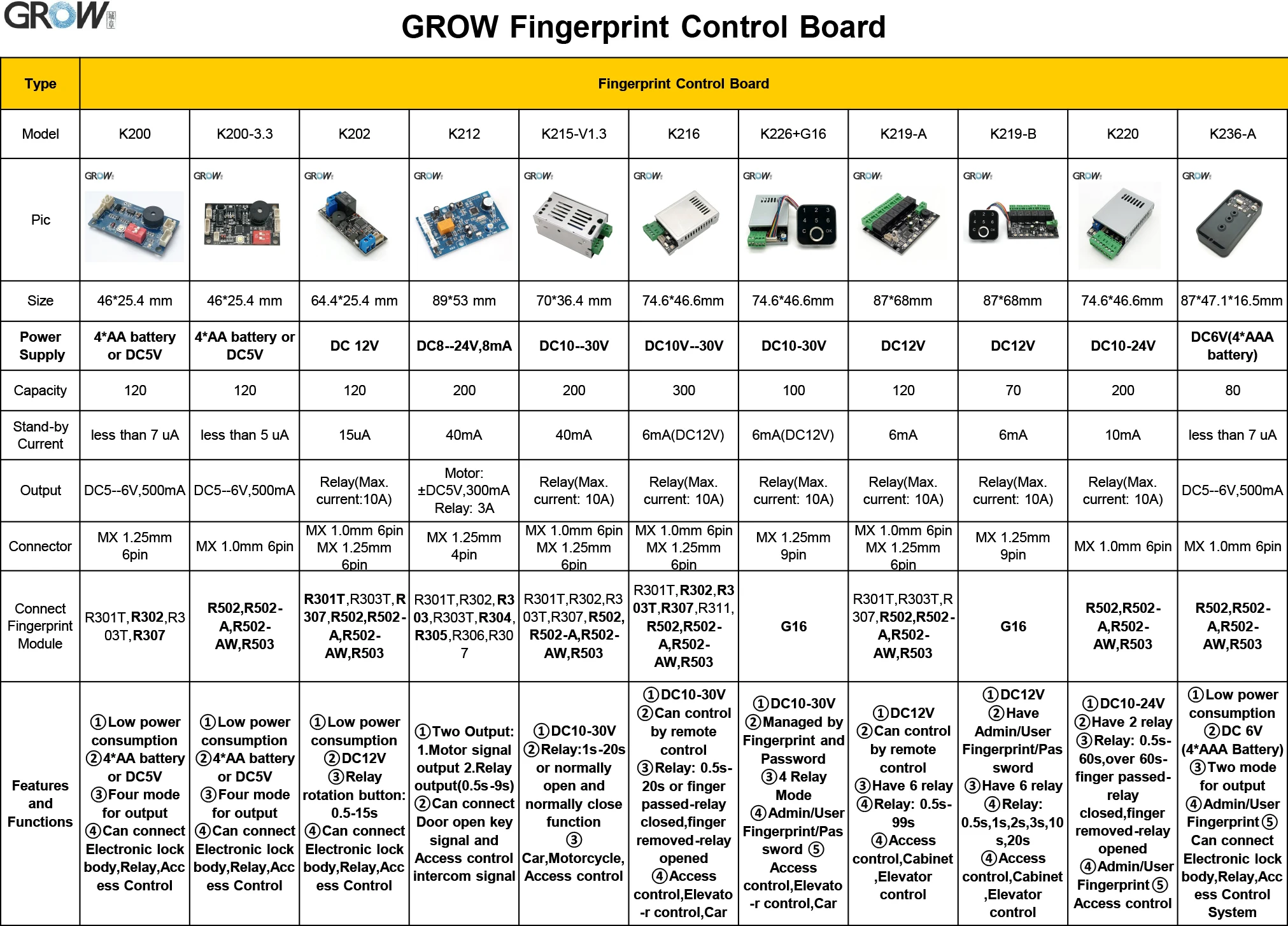 GROW K215-V1.3+R502-F Normally Open DC10-30V K215-V1.3 Fingerprint Control Board+R502-F Waterproof Small Fingerprint Module