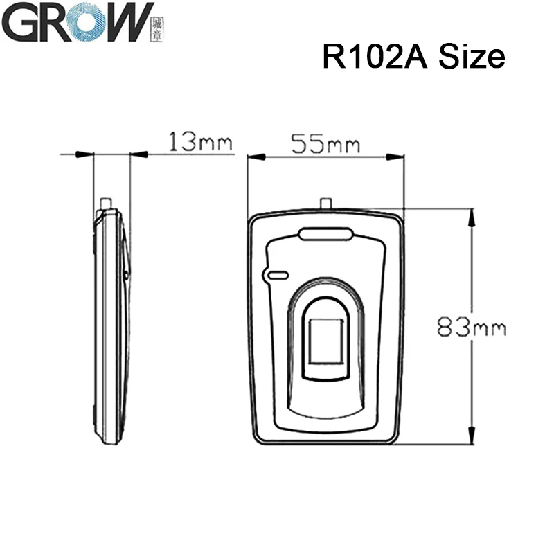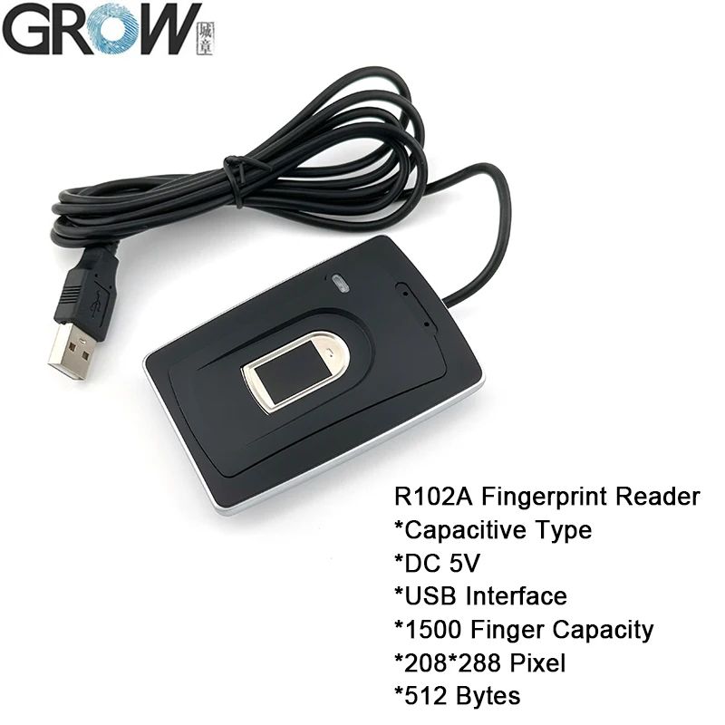 GROW R102A Capacitive USB Fingerprint Reader With DC5V 208*288 Pixel 1500 Capacity For Windows Android Access Control