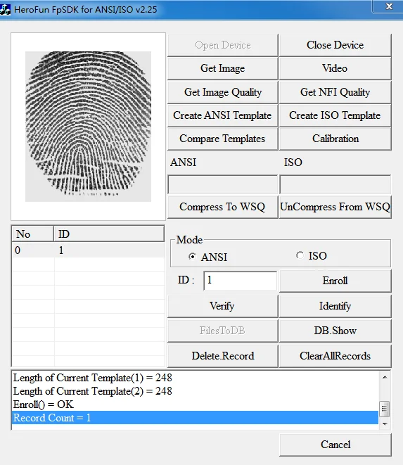 ·International Standards: ISO19794-2, ISO19794-4, ANSI 378, ANSI 381 and WSQ;