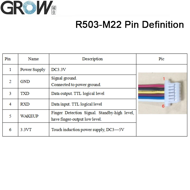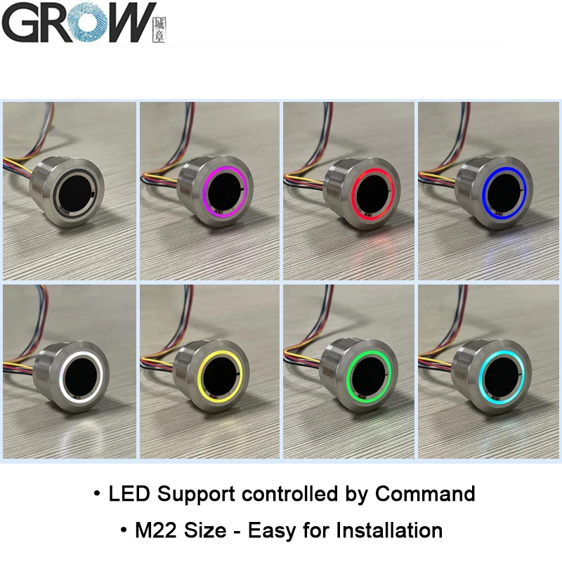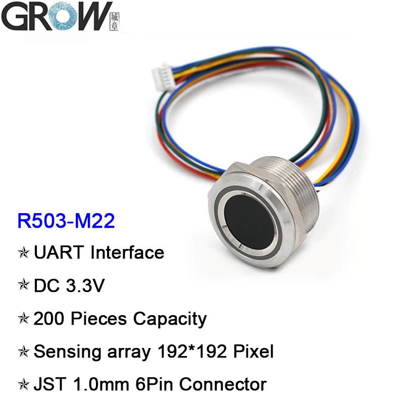 GROW R503-M22 Round RGB Ring Indicator LED Control DC3.3V 200 Capacity SH1.0-6pin Capacitive Fingerprint Module Sensor Scanner